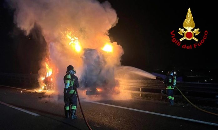 Furgone per il trasporto merci prende fuoco sulla A31: illeso l’autista
