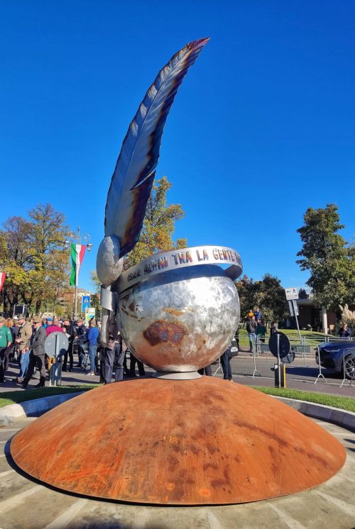 Giovanna Dalla Pozza Peruffo, già combattiva presidente di Italia Nostra e dell’Accademia Olimpica, critica la scelta di una grossa sfera con una penna d’alpino posta sopra ad accogliere i turisti che arrivano nella città gioiello del Rinascimento. «Una scelta incomprensibile. Chi ha dato l’autorizzazione non ha pensato che esiste anche un paesaggio urbano da rispettare, un cono di visuale proiettato verso il portale del Giardino Salvi alla fine di un viale che porta al cuore della città dominato dal torrione di Porta Castello?».