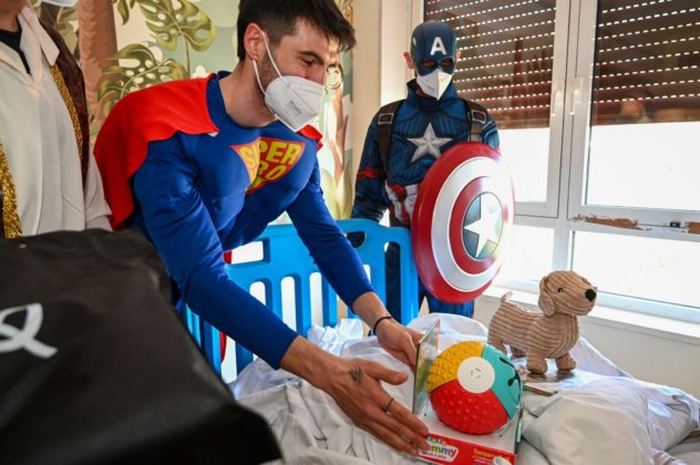 Alessandro Confente in versione Spiderman, Marco Carraro nelle vesti di Superman, Emilio Gallo in quelle di Wolverine, Claudio Morra in versione “Pirati dei Caraibi” e Omar Danesi in Capitan America: mascherata in occasione del Carnevale, nella mattinata di oggi una rappresentanza della squadra del L.R. Vicenza ha fatto visita ai piccoli pazienti ospitati nei reparti di Pediatria e Chirurgia Pediatrica dell’Ospedale San Bortolo di Vicenza.