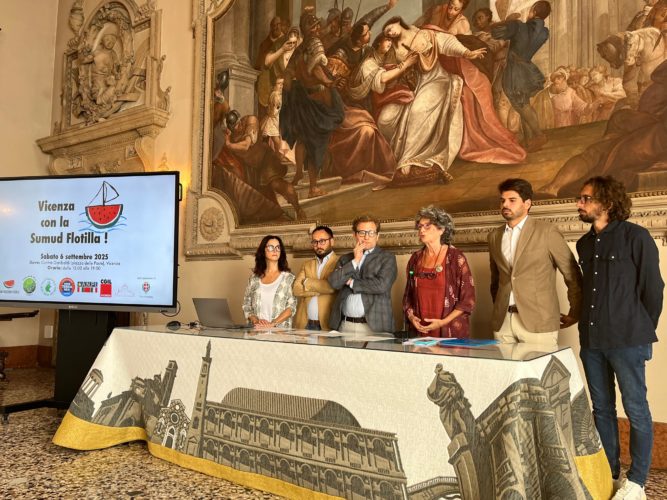 “Il Comune di Vicenza – ha confermato l’assessore Giovanni Selmo – , nel cui statuto vi è la promozione dei diritti umani, non può che sostenere con forza la Global Sumud Flotilla, che interviene coraggiosamente contro il genocidio palestinese in modo pacifico e non violento. Per questa spedizione, simbolo di una società civile che si muove, chiediamo la protezione al nostro Governo che potrebbe fare molto altro, ad esempio riconoscere lo Stato di Palestina come il Comune di Vicenza ha già fatto”.