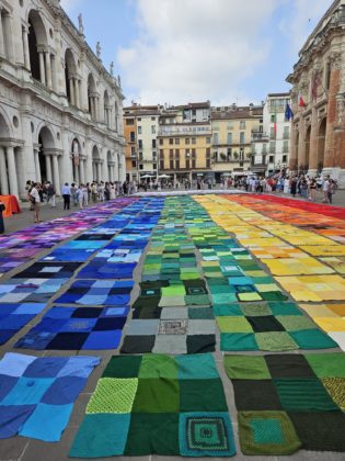 Ciascun plaid, composto da quadrati di 40×40 centimetri realizzati con varie tecniche, è stato ceduto a sostegno del progetto.