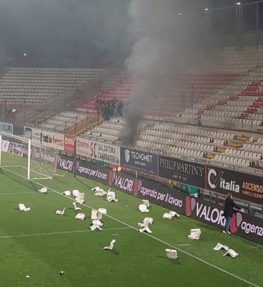 Si gioca già domani sera, in una casa biancorossa in cui si sta correndo contro il tempo per rimediare ai danni causati dall’inciviltà dei supporters tarantini, giunti in 1.200 in Veneto a portare distruzione più che tifare la propria squadra. Accessori e wc bagni distrutti, sporcizia lasciata ovunque e almeno un centinaio di seggiolini di plastica divelti e gettati in campo lo scempio provocato dall’inciviltà della marmaglia di idioti che ha abbandonato il Menti sconfitta ma impunita, per ora, ma su cui si sta lavorando – la Digos in particolare – per individuare i responsabili. Infine, si registra un ferito tra gli stewards, colpito ad una gamba da un fuoco pirico: non è grave ma ha dovuto ricorrere alle cure del pronto soccorso, così come un collega rimasto stordito dallo scoppio di un altro petardo.