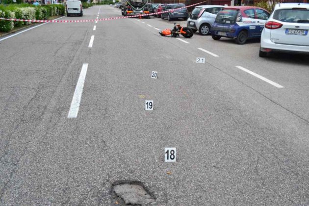 Dopo aver superato via dell’Economia per cause che sono in via di accertamento da parte della polizia locale ha perso il controllo della moto ed è caduto a terra; durante la fase dello scivolamento la moto ha colpito la parte posteriore di un Doblò Fiat condotto da G.L., 50enne di Lonigo, e successivamente due auto in sosta sul margine destro della carreggiata. A seguito di questo secondo impatto la moto si è spezzata in due, mentre il giovane ha terminato la sua corsa contro la barra posteriore di un’autobotte per gli espurghi, che era ferma a margine della carreggiata. Al ragazzo è quindi finita addosso anche la metà posteriore della sua moto ed è rimasto incastrato.