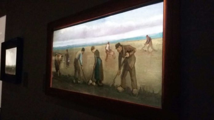 La mostra in Basilica – sottolinea Goldin – delinea l’intero percorso artistico di Vincent van Gogh, dai disegni di esordio assoluto al tempo del Borinage in Belgio nel 1880, quando svolgeva la funzione di predicatore laico per i minatori della zona, fino ai quadri conclusivi con i campi di grano realizzati a Auvers-sur-Oise nel luglio del 1890, pochi giorni prima di suicidarsi”. La mostra si svolge grazie al fondamentale contributo del Kröller-Müller Museum di Otterlo, uno dei due veri santuari dell’opera vangoghiana nel mondo. Il museo olandese ha prestato infatti oltre cento delle opere di Van Gogh, mentre un’altra decina di istituzioni e collezioni private hanno aggiunto capolavori per sigillare l’intero percorso, a cominciare dalla versione da Vincent più amata de Il ponte di Langlois (1888), una tra le immagini simbolo della sua parabola artistica e per questa occasione concessa eccezionalmente dal museo di Colonia.