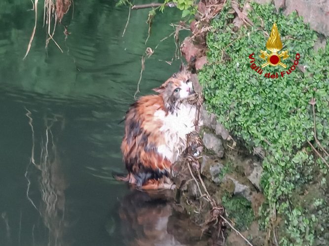 Micia si “tuffa” nel Bacchiglione: per salvarla arrivano i vigili del fuoco – VIDEO