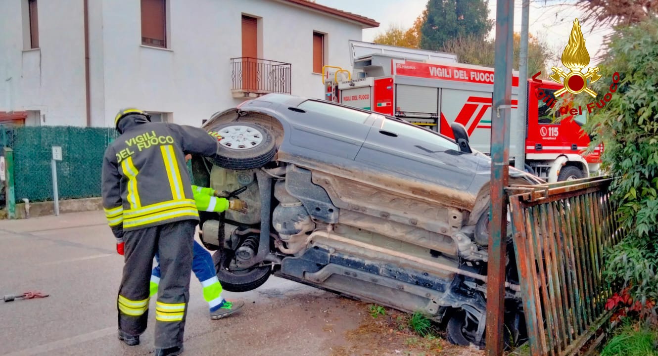 Alle 9:20, di venerdì 22 novembre, i vigili del fuoco sono intervenuti in Via Vittorio Veneto a Quinto Vicentino per un’auto finita in equilibrio precario su un fianco dopo essere stata tamponata: ferita la donna alla guida.
