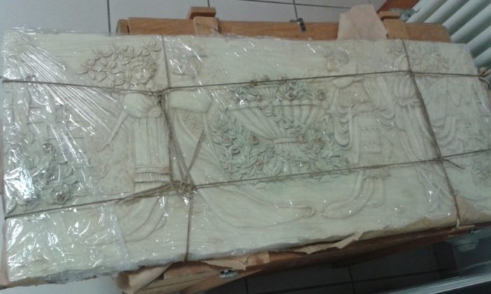 Singolare ritrovamento stamane in via della Repubblica a Sandrigo, da parte della polizia locale del consorzio Nord Est Vicentino: intorno alle 10 gli agenti hanno trovato abbandonato a terra niente meno che un bassorilievo di 93 centimetri per 40.