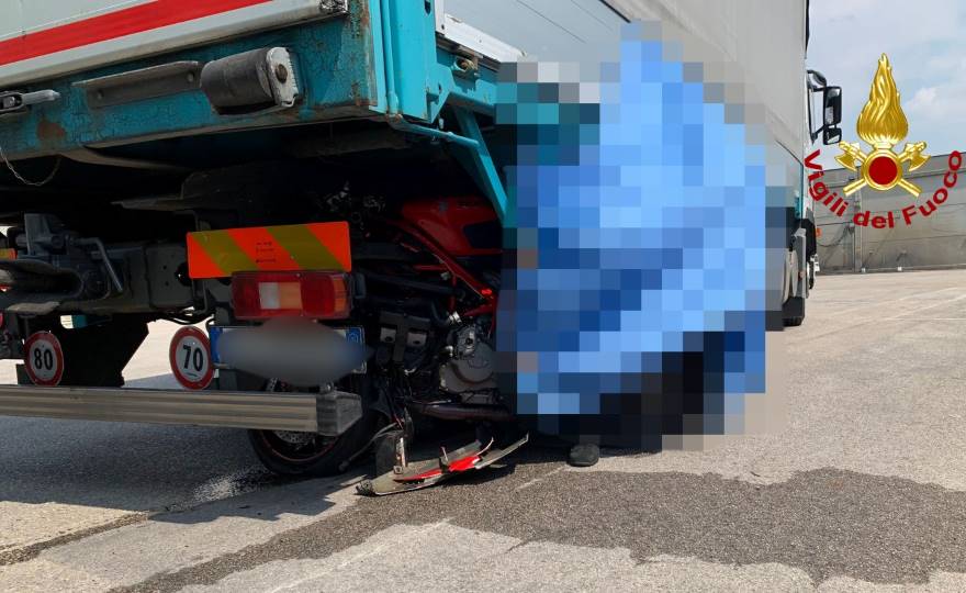 I sanitari del Suem erano usciti dalla centrale di Vicenza verso Sandrigo in codice rosso di massima gravità, rientrando invece con il “nero”, che indica in questi casi un drammatico epilogo della missione. Sul posto si sono precipitati i soccorsi dopo una chiamata giunta alle 11.50 al 118, con vigili del fuoco e polizia locale del consorzio Nord Est Vicentino oltre all’ambulanza. Sono state completate nel primo pomeriggio le procedure per informare i familiari della vittima, dopo aver acquisito i documenti che portava con sé. Alla guida del tir c’era oggi un camionista di 38 anni di Thiene (A.P. le iniziali): il Pubblico Ministero ha disposto l’apertura di un fascicolo per omicidio stradale.