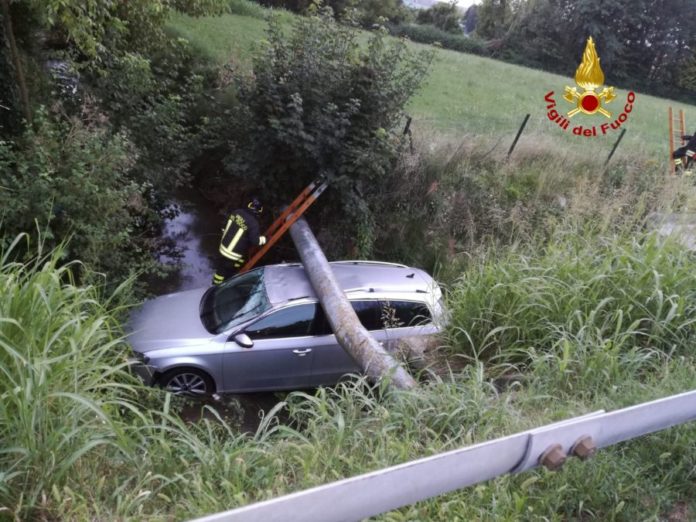 Dopo aver perso il controllo del veicolo, il conducente non ha potuto evitare la sbandata sulla carreggiata esterna. Il caso ha voluto che s’infilasse proprio in un pertugio tra le barriere, volando sul fossato “tombinato” e proseguendo così la marcia per una cinquantina di metri. Una corsa incontrollabile conclusasi sulla roggia e sotto un grosso tubo di distribuzione del metano ad alta pressione.