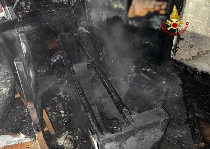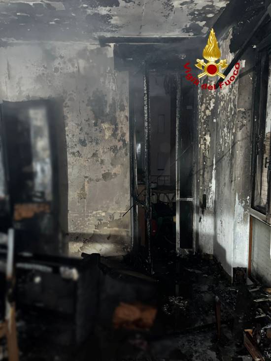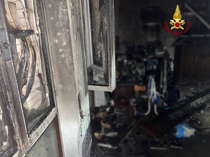 Soggiorno distrutto dalle fiamme: gravissimo un uomo, estratto svenuto dai pompieri