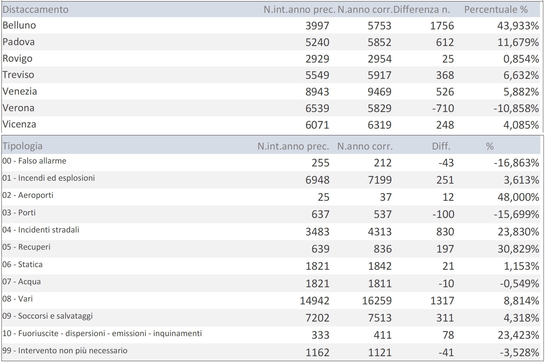 Dai dati è emerso che a Vicenza il numero degli interventi dei pompieri è aumentato rispetto all’anno successivo, anche se in percentuale minore rispetto ad altre province del Veneto. A fronte dei 6071 interventi registrati nel 2020 ne risultano 6319 nel 2021